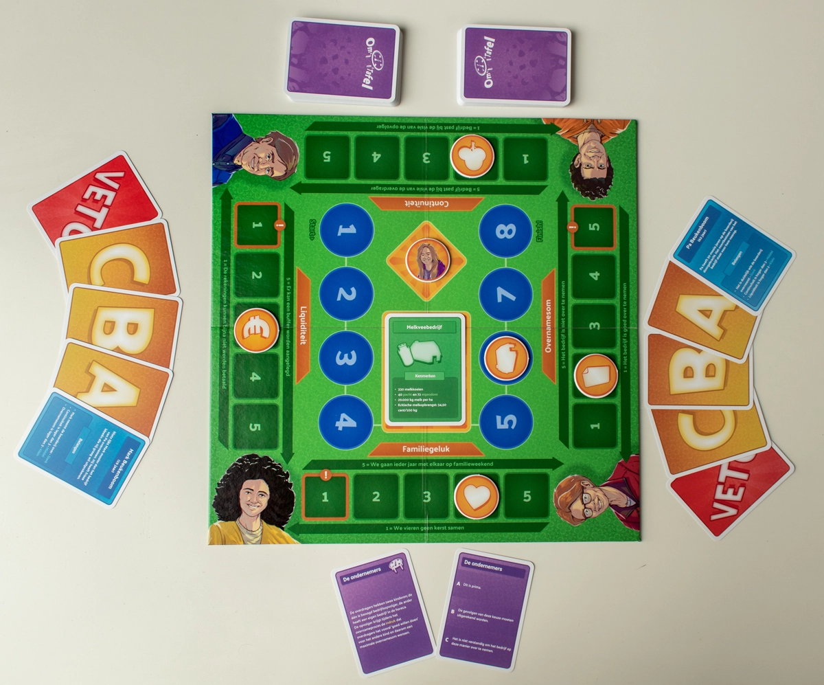 Stap in de wereld van familie Beukeboom met het bedrijfsovernamespel Om Tafel. Je kruipt in de rol van opvolger, niet-opvolger, overdrager of partner en gaat in gesprek over echte dilemma’s. Zo ervaar je hoe emoties, geld en toekomstplannen elkaar beïnvloeden. Het resultaat? Een open gesprek waarin belangen en verwachtingen helder op tafel komen. Om Tafel is beschikbaar in het Nederlands, Fries en Engels.